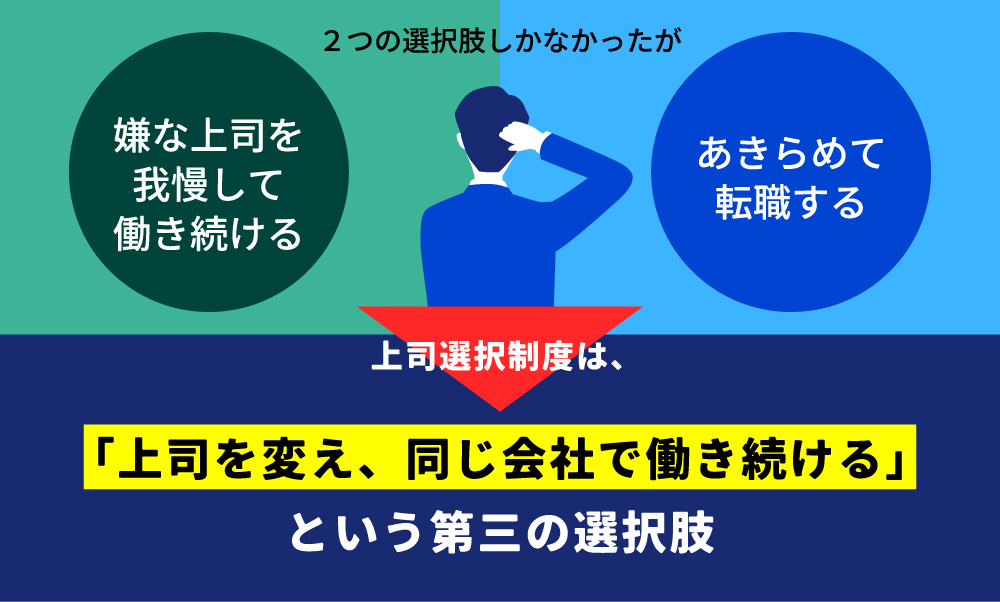 上司選択制度について「若者への甘やかしだ」「わがままを許すとつけあがる」「人付き合いや仕事は嫌な上司に揉まれて覚えるものだ」という、客観的なお声をよく頂戴します。