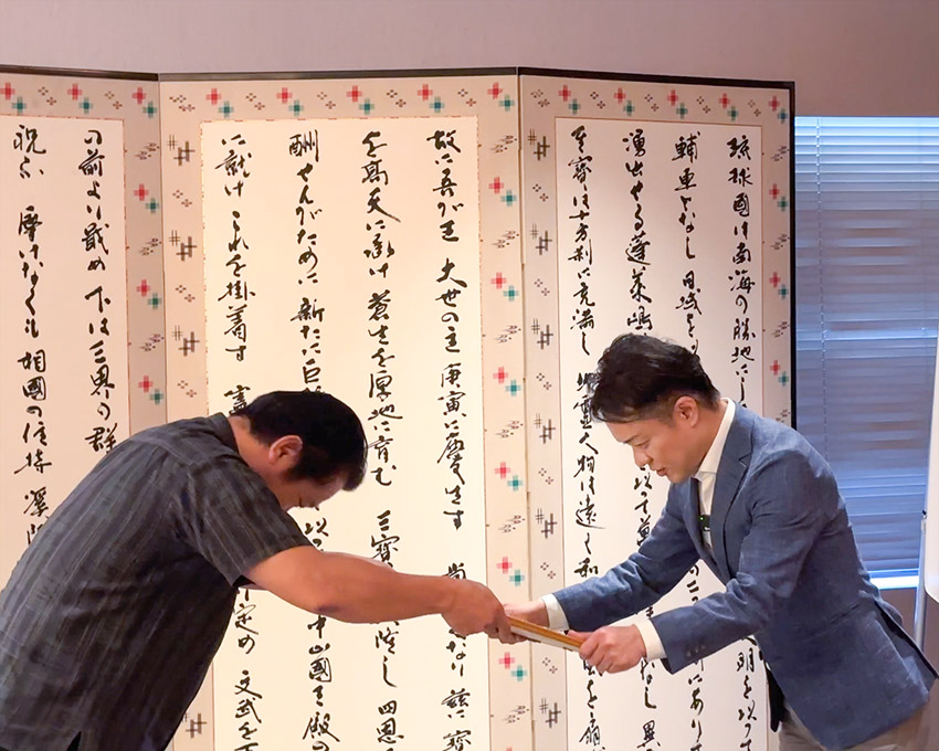 表彰式は、石垣市役所応接室にて執り行われ、石垣市の中山義隆市長より表彰状が授与されました。