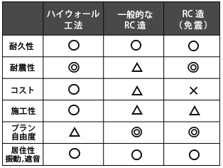 『ハイウォール工法』の特徴は、高い耐震性にあり、同一プランのRCラーメン造と比較し、