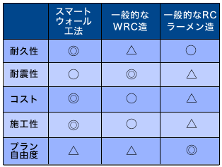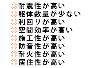 WRC造は、その他にも柱型や梁型が居室空間に出てこない広々とした空間や高い耐久性・耐火性・気密性・遮音性、そしてローコストがメリットとして挙げられます。さくら構造は、それらのメリットはそのままで、更にコストの追求と施工性、耐久性を向上させた『スマートウォール工法』を開発致しました。