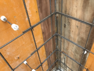 既に札幌本社の隣に4階建て、壁厚150mm、シングル配筋の実大実験棟が竣工しており、経過を観察しています。